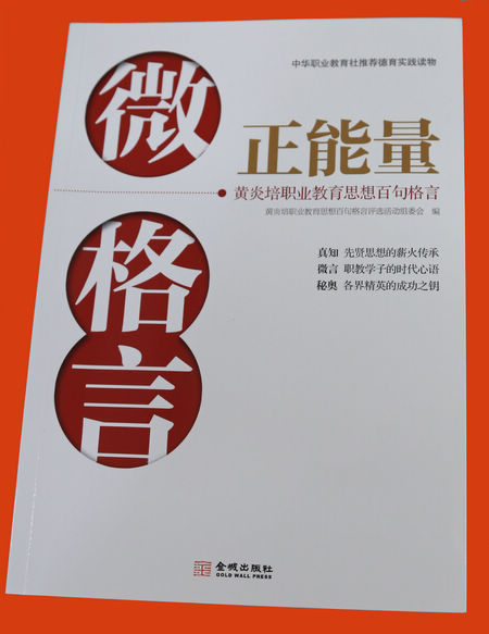 德陽市千山街三段87號近日,由中華職業(yè)教育社黃炎培職業(yè)教育思想百句格言評選活動主委會編寫的《微格言 · 正能量》一書出版發(fā)行。全國政協(xié)副主席、中華職業(yè)教育社理事長張榕明,民建中央常委、中華職業(yè)教育社理事、中華同心溫暖工程基金會副理事長蘇華,中國國土資源作家協(xié)會副主席、中國土地學(xué)會文化分會副主任周偉分別為該書作序。