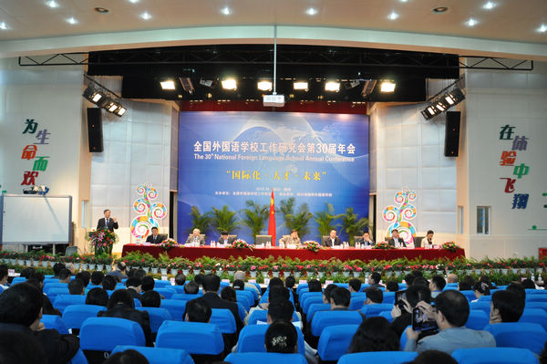 10月20日至21日,全國外國語學(xué)校工作研究會第30屆年會在四川現(xiàn)代教育集團(tuán)德陽外國語學(xué)校舉行。本屆年會由全國外國語學(xué)校工作研究會主辦,德陽外國語學(xué)校承辦。本屆年會的主題是“國際化、人才、未來”。出席本屆年會開幕式的有教育部基教二司技術(shù)裝備處處長喬玉全,上海外國語大學(xué)黨委書記、全國外國語學(xué)校工作研究會會長、理事會理事長吳友富,全國外國語學(xué)校工作研究會秘書長邢三多,德陽市人民政府副市長楊震,四川省教育廳基礎(chǔ)教育處副處長張正華、上海外國語大學(xué)附屬外國語學(xué)校副校長、全國外國語學(xué)校工作部部長趙均寧,德陽市教育工委專職副書記唐發(fā)初,以及來自全國百余所外國語學(xué)校的校長、專家共計200余人出席了本屆年會。