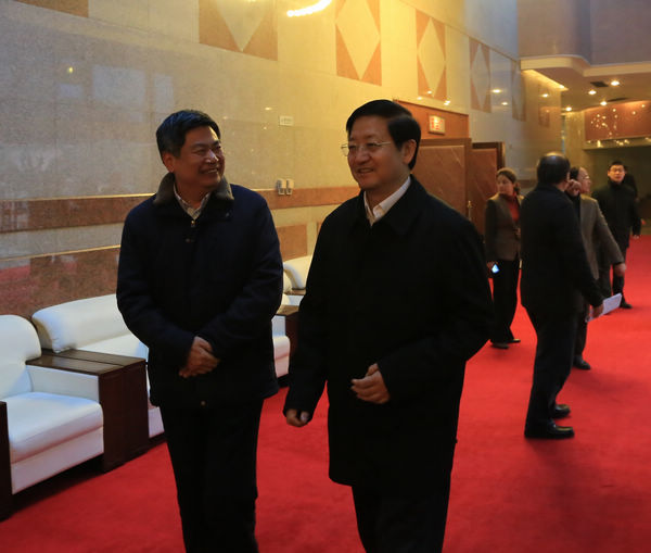會議期間,省委常委、省紀委書記王懷臣與省政協(xié)常委蘇華親切交談