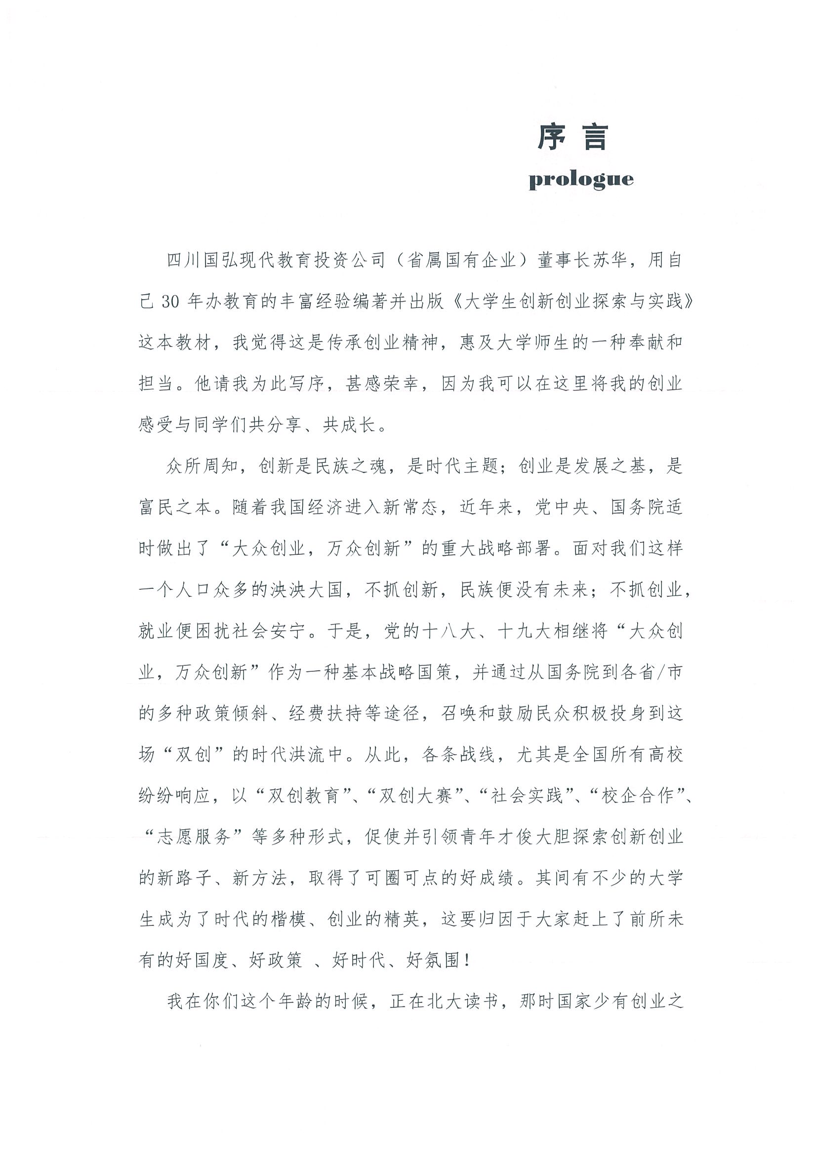 俞敏洪為蘇華主編的《大學(xué)生創(chuàng)新創(chuàng)業(yè)探索與實踐》一書作序